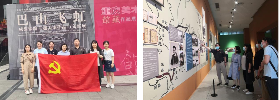 活動(dòng)簡(jiǎn)介:6月8日下午,集團(tuán)審法財(cái)務(wù)黨支部在集團(tuán)監(jiān)事會(huì)主席、工會(huì)主席陳靜和財(cái)務(wù)總監(jiān)馬明澤的帶領(lǐng)下,來到重慶美術(shù)館開展“喜迎二十大,感受成渝鐵路建設(shè)發(fā)展”主題黨日活動(dòng)。活動(dòng)成效:活動(dòng)中,一行人仔細(xì)參觀了“巴山飛虹——成渝鐵路主題美術(shù)作品與文獻(xiàn)展”,展覽共展出了“速度成渝鐵路”主題美術(shù)作品和文獻(xiàn)資料100余件,涵蓋連環(huán)畫、攝影、油畫、雕塑等多種形式,全面展示了七十年來“成渝鐵路”主題創(chuàng)作的歷史變遷。參觀結(jié)束后,大家紛紛表示,對(duì)歷史最好的致敬就是書寫新的歷史,將立足崗位職責(zé),認(rèn)真做好各項(xiàng)本職工作,為推動(dòng)都市快線事業(yè)高質(zhì)量發(fā)展作出應(yīng)有貢獻(xiàn)。