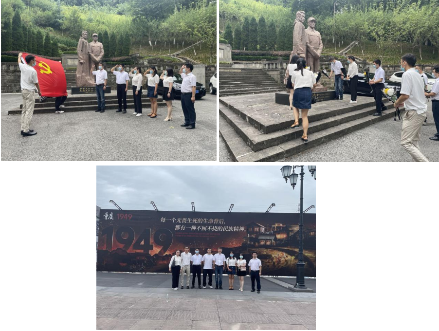 活動(dòng)簡(jiǎn)介:為推動(dòng)黨史學(xué)習(xí)教育常態(tài)化長效化,引導(dǎo)全體黨員牢記黨的宗旨、珍惜黨員身份、永葆先進(jìn)本色,7月22日,規(guī)劃發(fā)展部黨支部組織開展“追尋紅色記憶,傳承革命精神”主題黨日活動(dòng)。全體黨員前往紅巖文化景區(qū)歌樂山松林坡參觀學(xué)習(xí),以重溫入黨誓詞和獻(xiàn)花儀式表達(dá)對(duì)英雄們深切的懷念及崇高的敬意?;顒?dòng)還組織觀看了歷史舞臺(tái)劇《重慶·1949》。活動(dòng)成效:此次活動(dòng)讓黨員們?cè)趨⒂^學(xué)習(xí)的過程中深入了解了英雄烈士的革命事跡,通過豐富的歷史文物、詳實(shí)的文獻(xiàn)資料進(jìn)一步了解革命的艱苦歷程,追憶英雄們保家衛(wèi)國的豐功偉績。大家紛紛表示,將繼承革命先輩遺志、發(fā)揚(yáng)優(yōu)良傳統(tǒng),牢記初心使命、堅(jiān)定理想信念,永葆干事創(chuàng)業(yè)的激情與熱情,自強(qiáng)不息、奮斗不止,為集團(tuán)的高質(zhì)量發(fā)展貢獻(xiàn)一己之力。