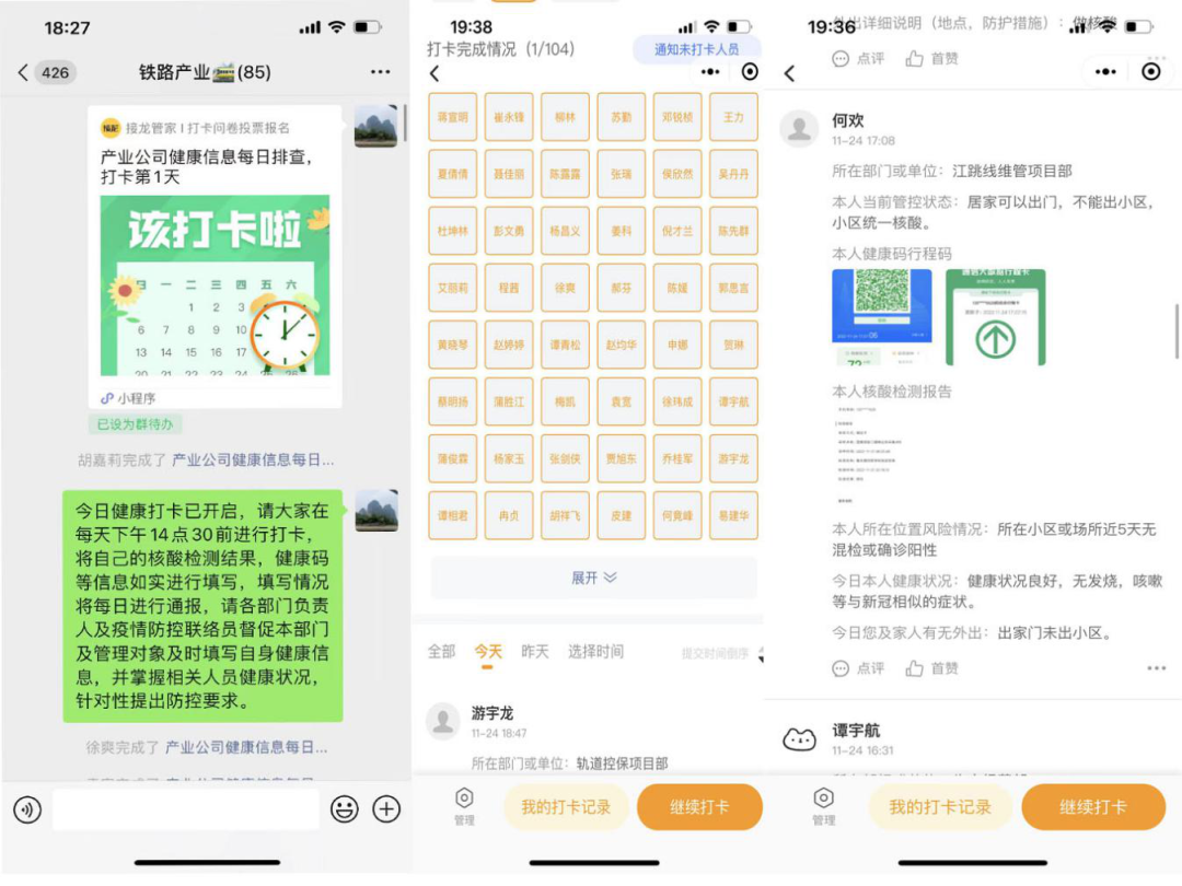 產(chǎn)業(yè)公司創(chuàng)新開展員工健康排查打卡接龍