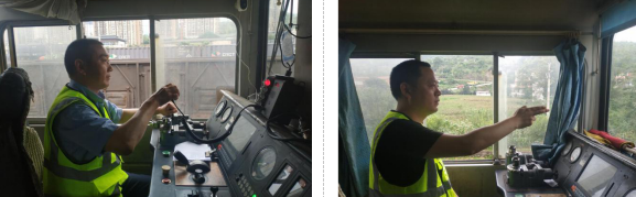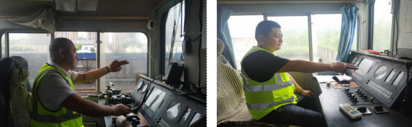 司機李建正在確認進路和信號 副司機張鵬進行接班后對各儀表檢查