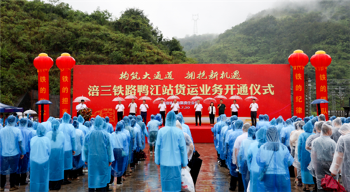 在開通儀式活動現(xiàn)場,武隆區(qū)委副書記、區(qū)長左軍,武隆區(qū)委常委、組織部部長榮鑫,武隆區(qū)副區(qū)長劉印,重慶交通開投集團(tuán)黨委委員、副總經(jīng)理鄭志明,市鐵路集團(tuán)監(jiān)事會主席、工會主席陳靜,市鐵路集團(tuán)二級專務(wù)員兼南涪公司黨委書記、董事長馬明澤,國鐵成都局集團(tuán)重慶車務(wù)段副段長虞好,國鐵成都局集團(tuán)重慶物流中心副總經(jīng)理張凱,武隆區(qū)有關(guān)部門和單位負(fù)責(zé)人,市鐵路集團(tuán)運營管理部、安全質(zhì)量部、黨委宣傳部負(fù)責(zé)人,南涪公司部分客戶企業(yè)代表和南涪公司部分干部職工代表,共同見證了涪三鐵路開通鴨江站貨運業(yè)務(wù)的歷史性時刻。開通儀式由市鐵路集團(tuán)黨委副書記、總經(jīng)理馬虎主持。