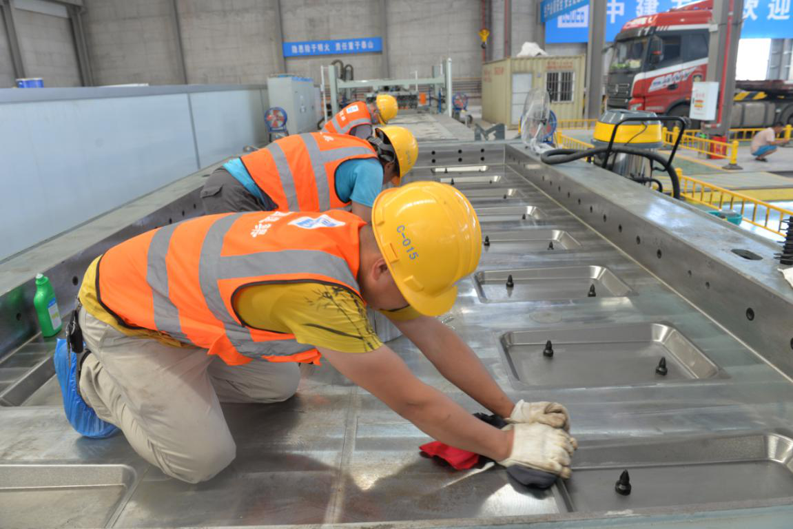 經(jīng)過各方共同努力,中建重慶軌道交通15號線一期土建09標(biāo)項(xiàng)目部在7月期間相繼完成軌道板場選址、生產(chǎn)線設(shè)計(jì)、設(shè)備安裝與調(diào)試等工作,軌道板場生產(chǎn)線已全面建成。軌道板場已進(jìn)入試生產(chǎn)階段,預(yù)計(jì)8月底正式投產(chǎn),為全線的軌道板的鋪設(shè)供貨提供有力的保障。