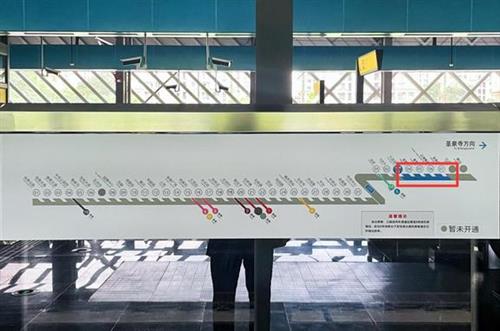 在等車(chē)的間隙也可以再仔細(xì)看看站臺(tái)門(mén)上的線路圖,灰色代表列車(chē)已經(jīng)經(jīng)過(guò)的區(qū)段,藍(lán)色代表未到達(dá)的區(qū)段(也就是列車(chē)行駛的方向)。