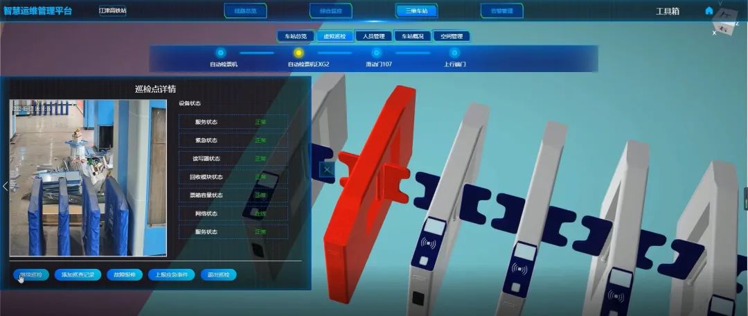 傳統(tǒng)軌道交通車站開站及關(guān)站過程復(fù)雜,涉及設(shè)備繁多,且絕大部分設(shè)備需要人工啟停,導(dǎo)致開關(guān)站耗時(shí)較長,而江跳線將一鍵開關(guān)站功能應(yīng)用到全線車站。該功能結(jié)合運(yùn)營實(shí)際需求優(yōu)化了開關(guān)站流程和聯(lián)動項(xiàng)目,通過對CCTV實(shí)時(shí)畫面、廣播語音播報(bào)、電扶梯、卷簾門等相關(guān)專業(yè)設(shè)備的聯(lián)控,科技賦能提高客運(yùn)人員開關(guān)站效率,為實(shí)現(xiàn)江跳線智能化管理和智慧化運(yùn)營邁進(jìn)重要的一步。